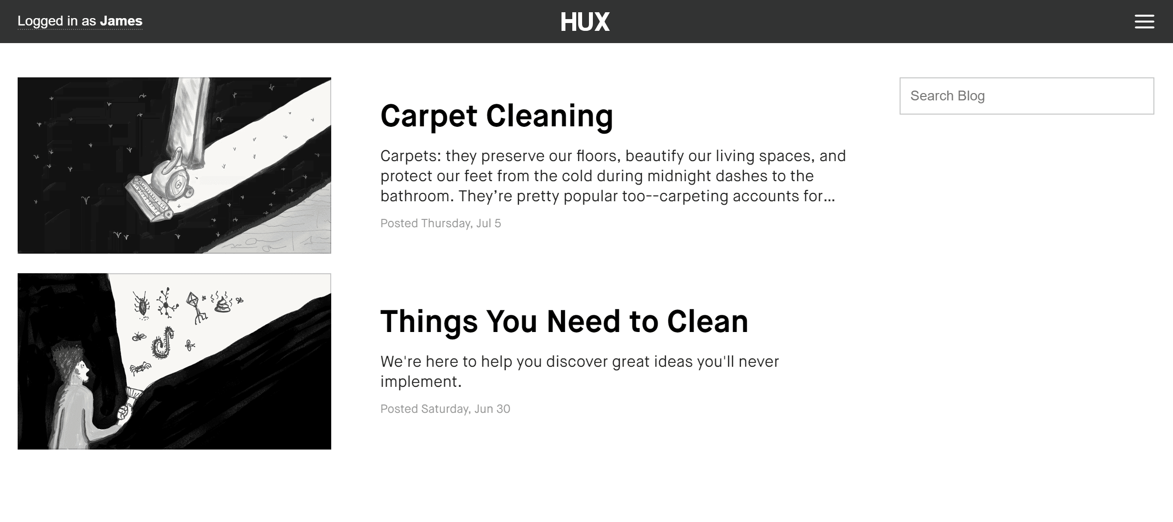 The blog has been finished and is now active. It has two posts and artwork by James! Made with ❤️ by Hux Product blog.png Posted on July 9, 2018